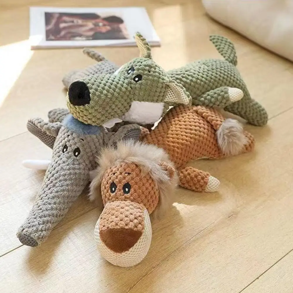 Large Dog Toy Bite-Resistant Sound Plush Toy Lion Wolf Elephant Cartoon Pet Toy Squeaky For Small & Medium Dogs